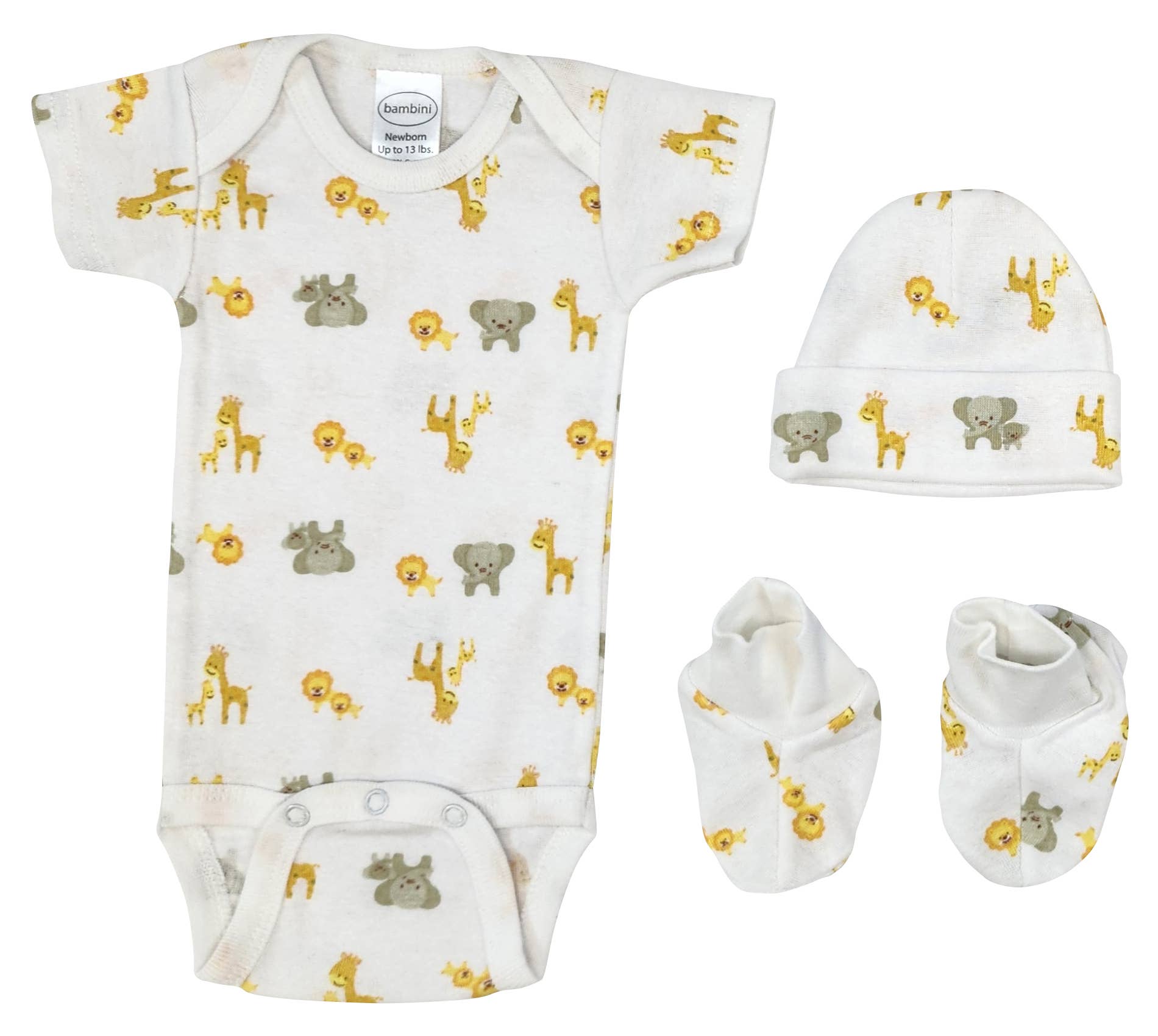 This amazing 3-piece gift set comes complete with a short sleeve onezie bodysuit, a hat, and a pair of booties. This makes for the perfect starter kit to give every new mommy the few essential garments that she’ll need for her new bundle of joy. This beautiful pastel pink shade will make for a great spring gift.Bodysuit, cap, booties 100% cotton interlock. Size Newborn – Up to 6 months.