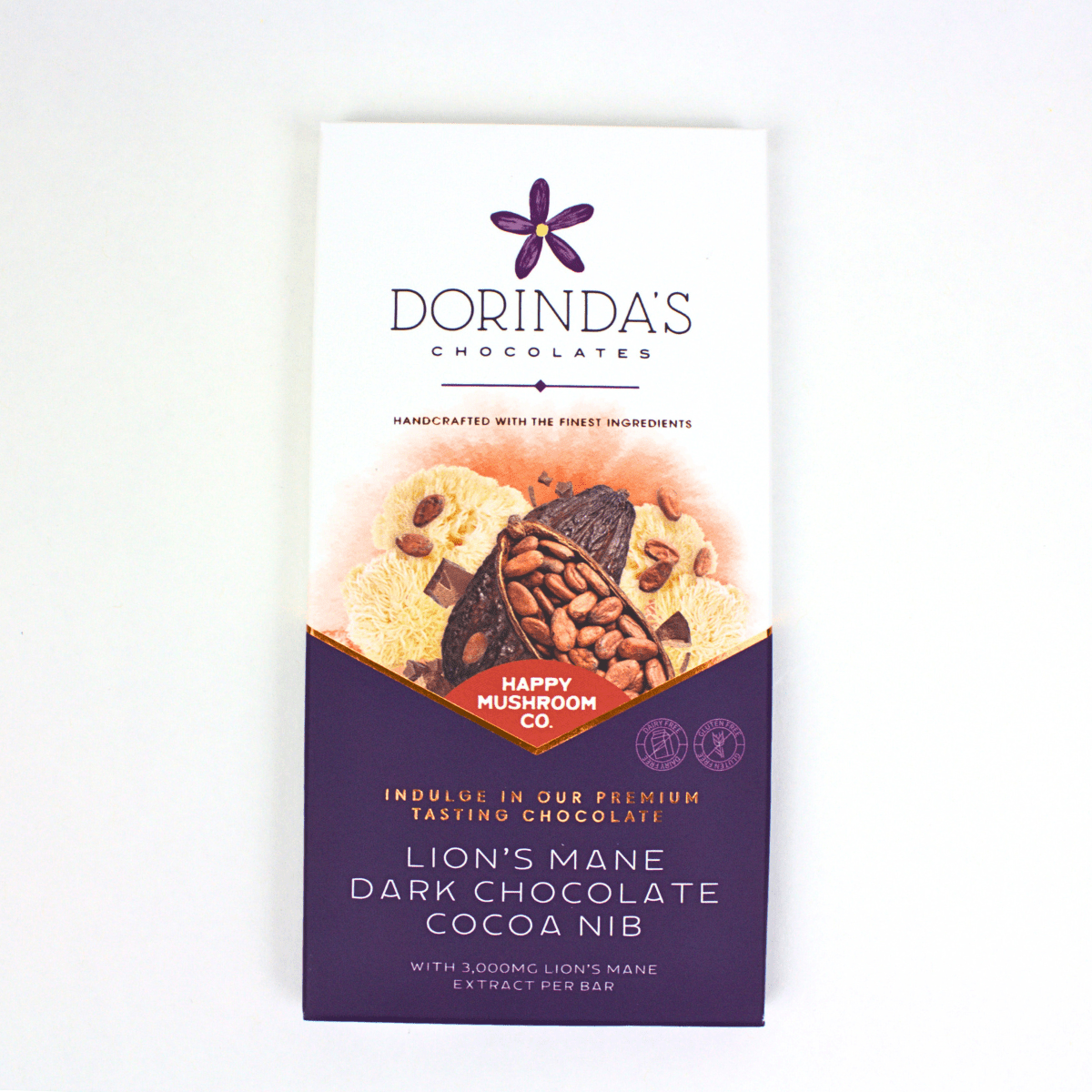 Revered for centuries, Lion’s Mane is celebrated for its ability to support mental clarity, focus, and cognitive vitality, while also contributing to overall neurological and immune wellness. Sourced from our trusted local partner, Happy Mushroom Co., the extract is derived exclusively from the fruiting body to ensure exceptional purity and potency, supporting a healthy body and a clear, focused mind. This, combined with the natural antioxidants in the nutrient dense 70% dark chocolate, makes this bar the perfect healthy treat that is not only delicious, but actually benefits your mind and body.