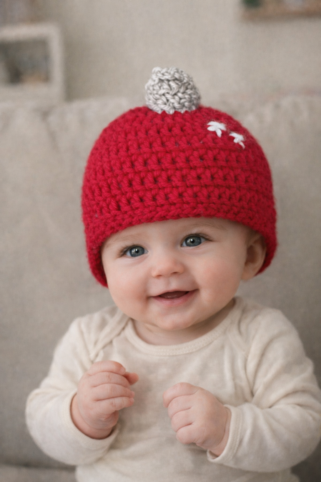 Soft, warm, and gentle on little heads, this hat is ideal for Christmas photos, holiday gatherings, or gifting to celebrate baby’s first holidays. Each hat is lovingly handmade, making it a unique keepsake you’ll treasure year after year.