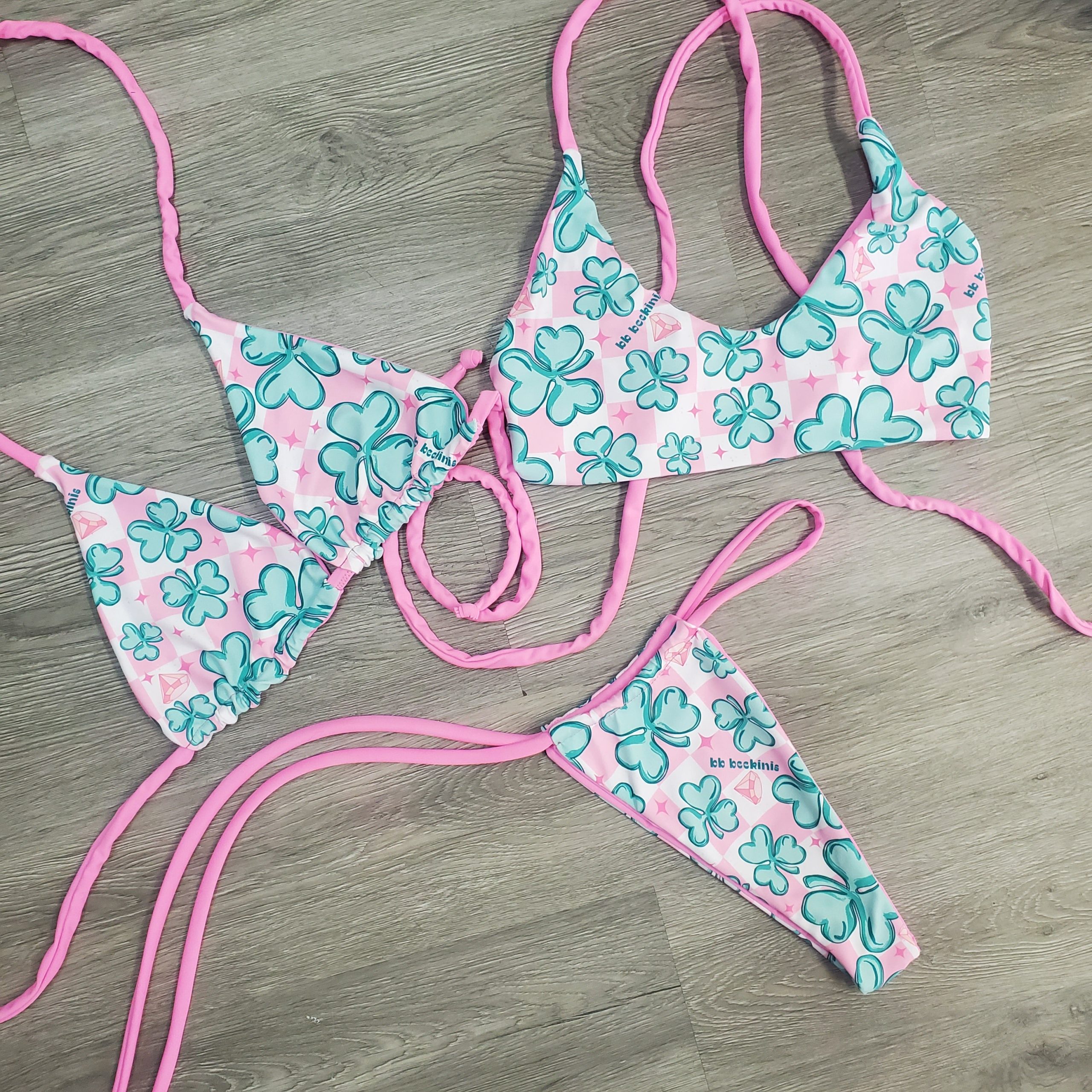 ʟʊƈӄʏ ʏօʊ Bikini! Feel confident in this Reversible BIKINI🍀 Custom print exclusive to BBBeekinis as we hand design our fabrics, so much to see in the cute and fun retro print!