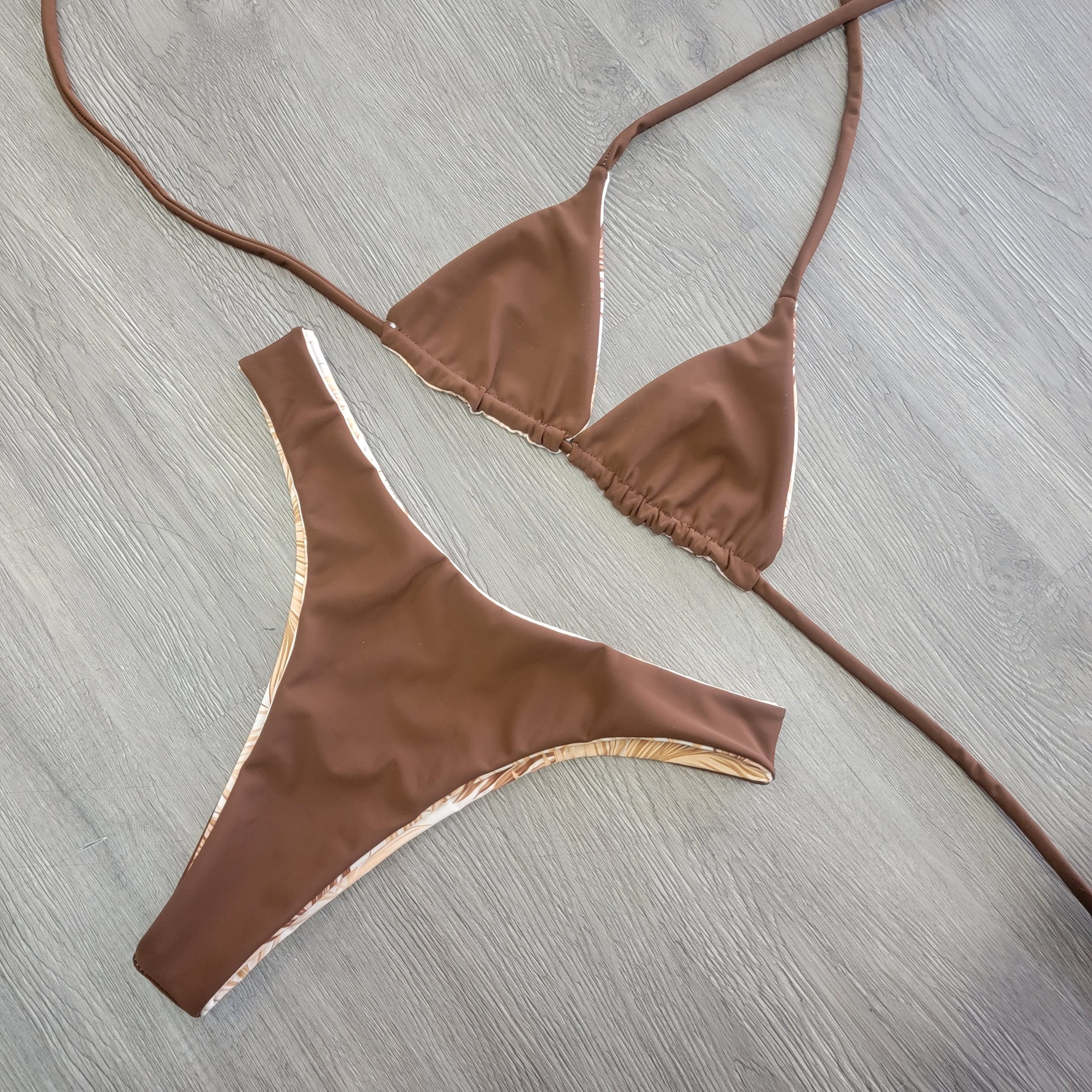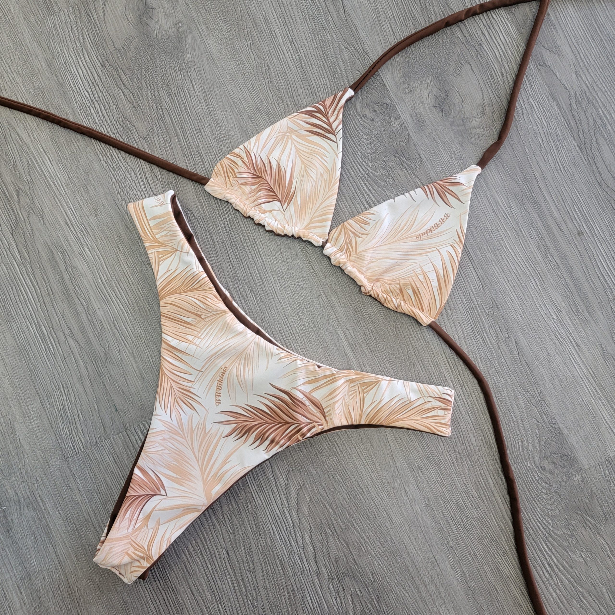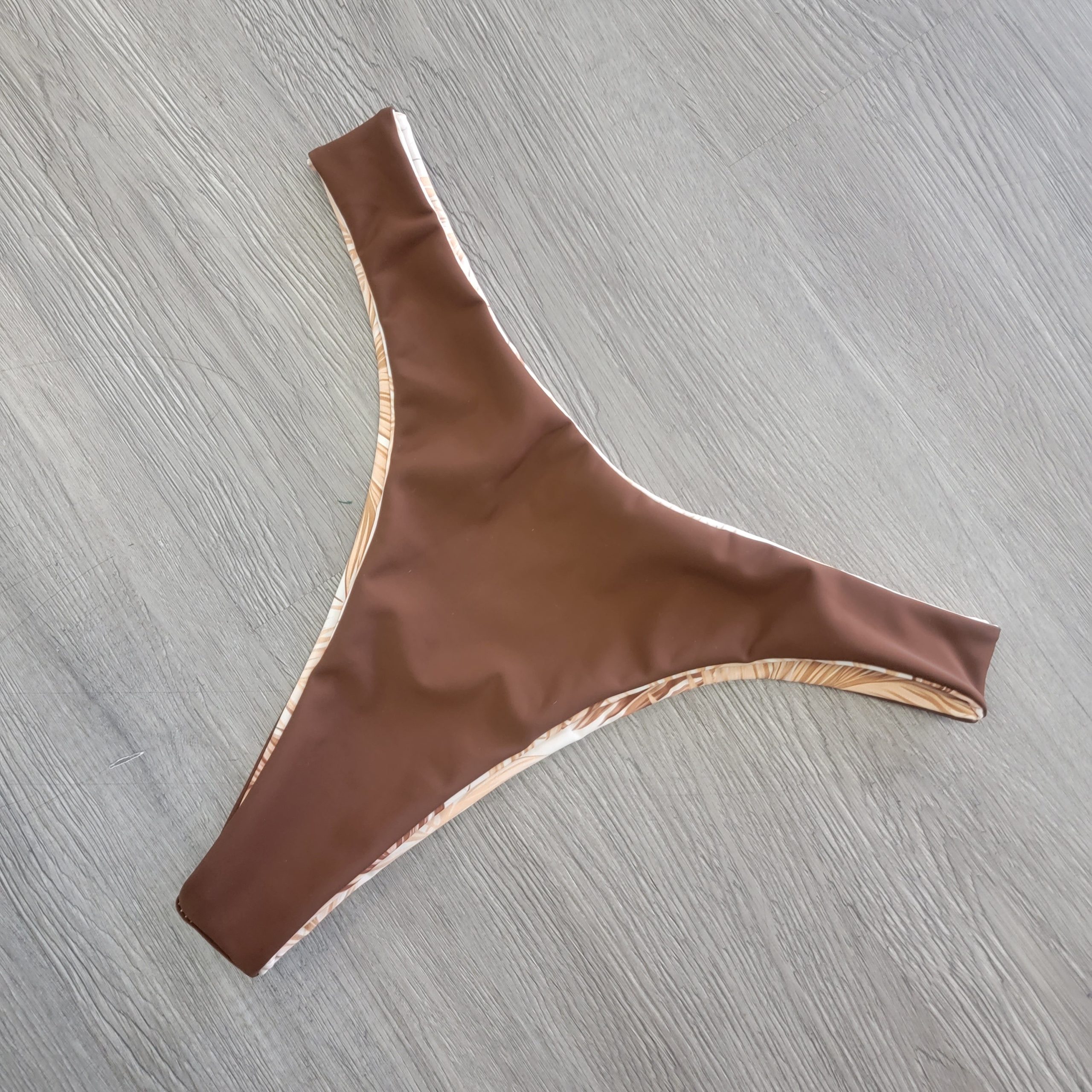 Introducing the Bonita Scoop Bottom: the perfect balance of cheeky and playful with a touch of tan palms on one side and brown on the reverse. This versatile piece adds a fun and quirky twist to any beach look. Neutral enough to pair with any top, these scoop bottoms are a must-have for your swimwear collection!