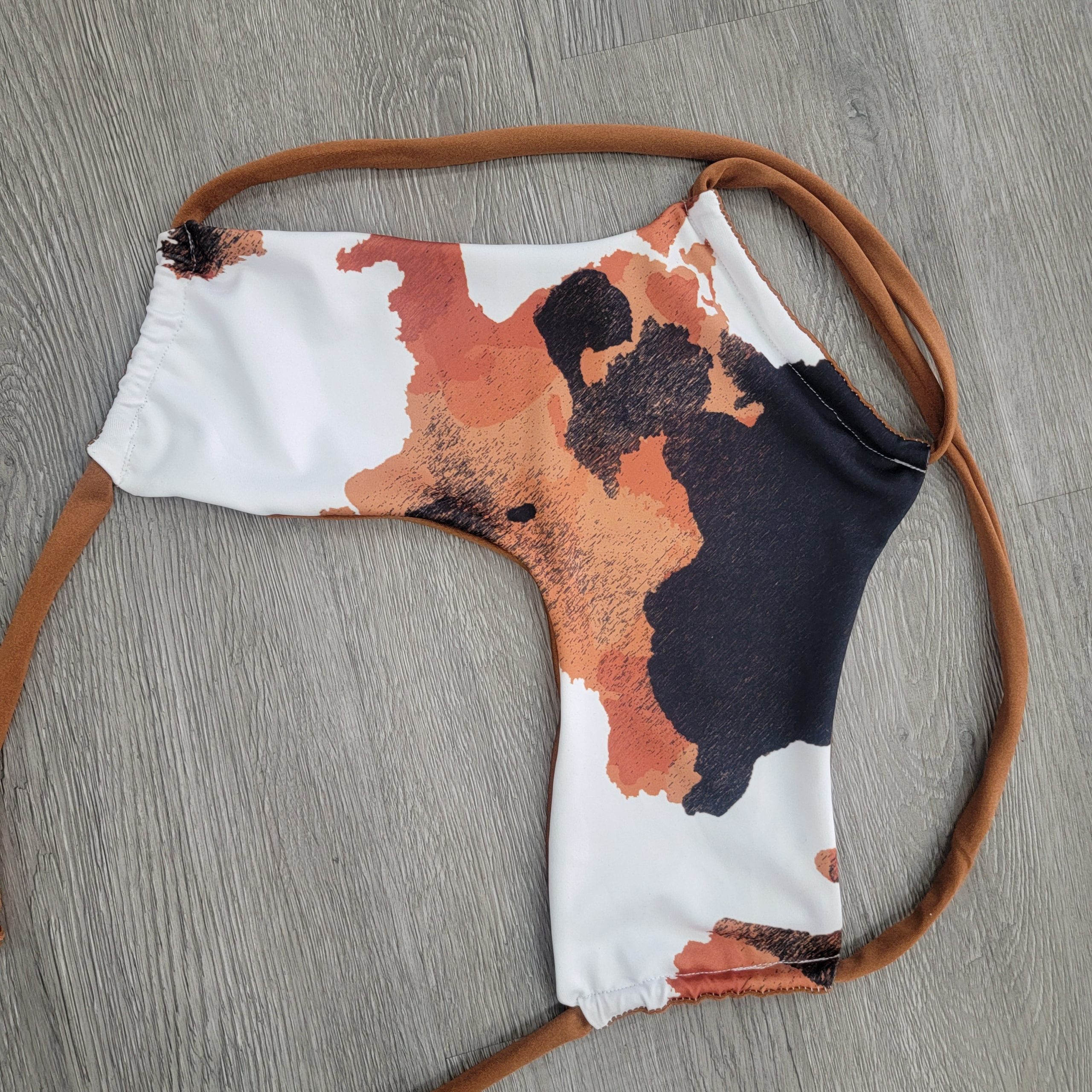 Look no further than the Buckle Bunny Rio Top for a western look to die for! Show off your wild side with this cow-print bikini top, featuring flirty peek-a-boos and sure to get your heart a-thumping! The cutest top this side of the Mississippi River, you’ll be the most stylish cowgirl in town! Yee-haw!