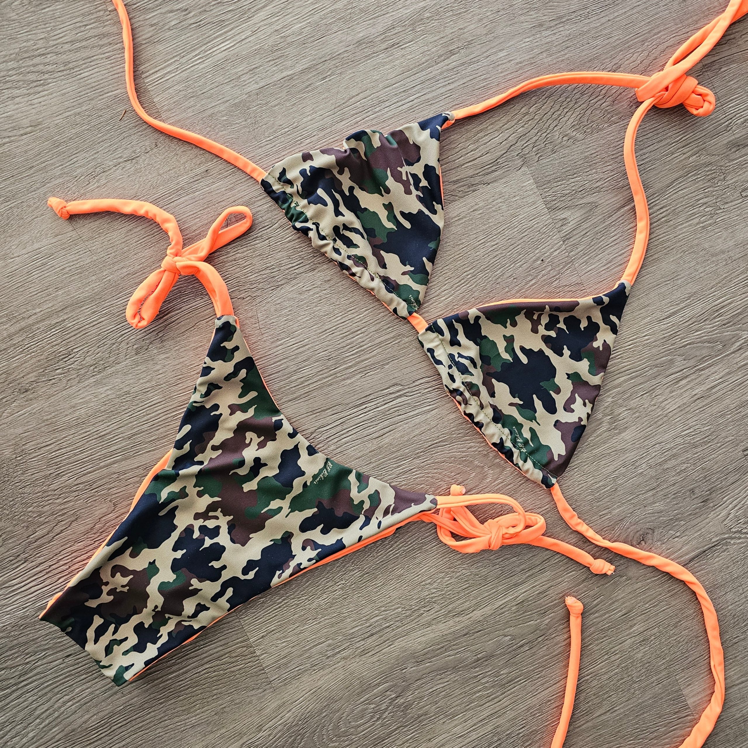 Our Camo Orange Bali Bottom keeps your style undercover! These cheeky bottoms with a scrunch butt for a unique look that’s sure to help you stand out in a silent crowd. And the adjustable tie sides let you rock the perfect fit – no mission too impossible!
