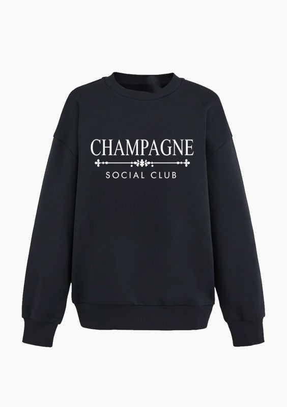 The Champagne Social Club Sweatshirt is your new favorite excuse to stay cozy. We loved it so much we cut the neckline off ours for that effortless, laid-back vibe. Ultra-soft fabric that feels like a warm hug, perfect for lounging, coffee runs, or pretending you have your life together. Dress it up or down—this is the sweatshirt that does it all without trying too hard.