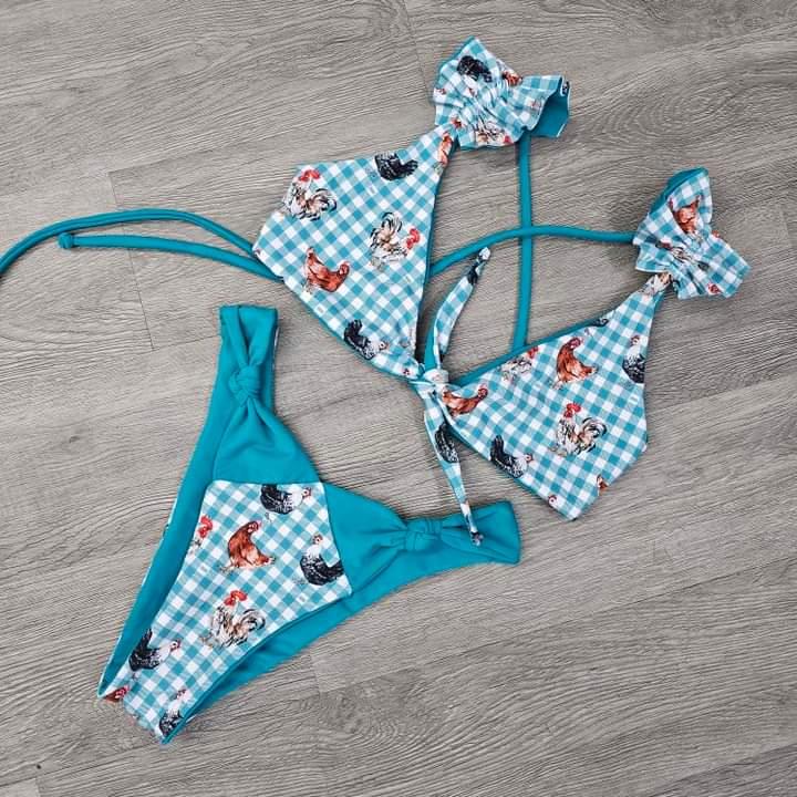 Get ready to ruffle some feathers at your next pool party with the Homestead Whiskey River Top. This playful bikini, featuring a chicken and gingham design, is the perfect way to show off your love of all things quirky. With adjustable straps and a tie front, you’ll be comfortable and stylish all day long. (Plus, we won’t judge if you insist on wearing it to the chicken coop.)