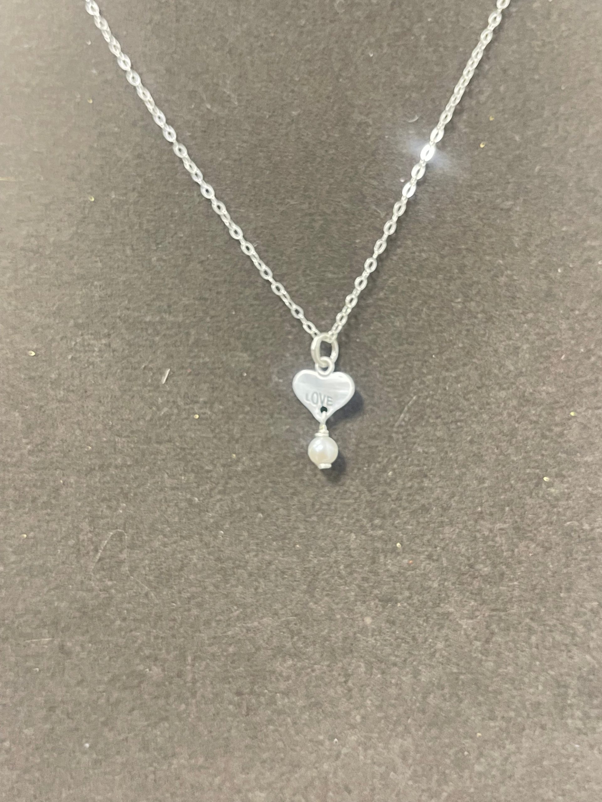 This sweet and understated sterling silver necklace features a petite heart charm hand-stamped with the word “love,” paired with a luminous freshwater pearl drop. The simple heart silhouette and soft glow of the pearl create a timeless, meaningful piece that feels both modern and sentimental. Thoughtfully handcrafted by Ginger Blossom Jewelry, this necklace is perfect for everyday wear, layering, or gifting as a symbol of love, connection, and quiet elegance.