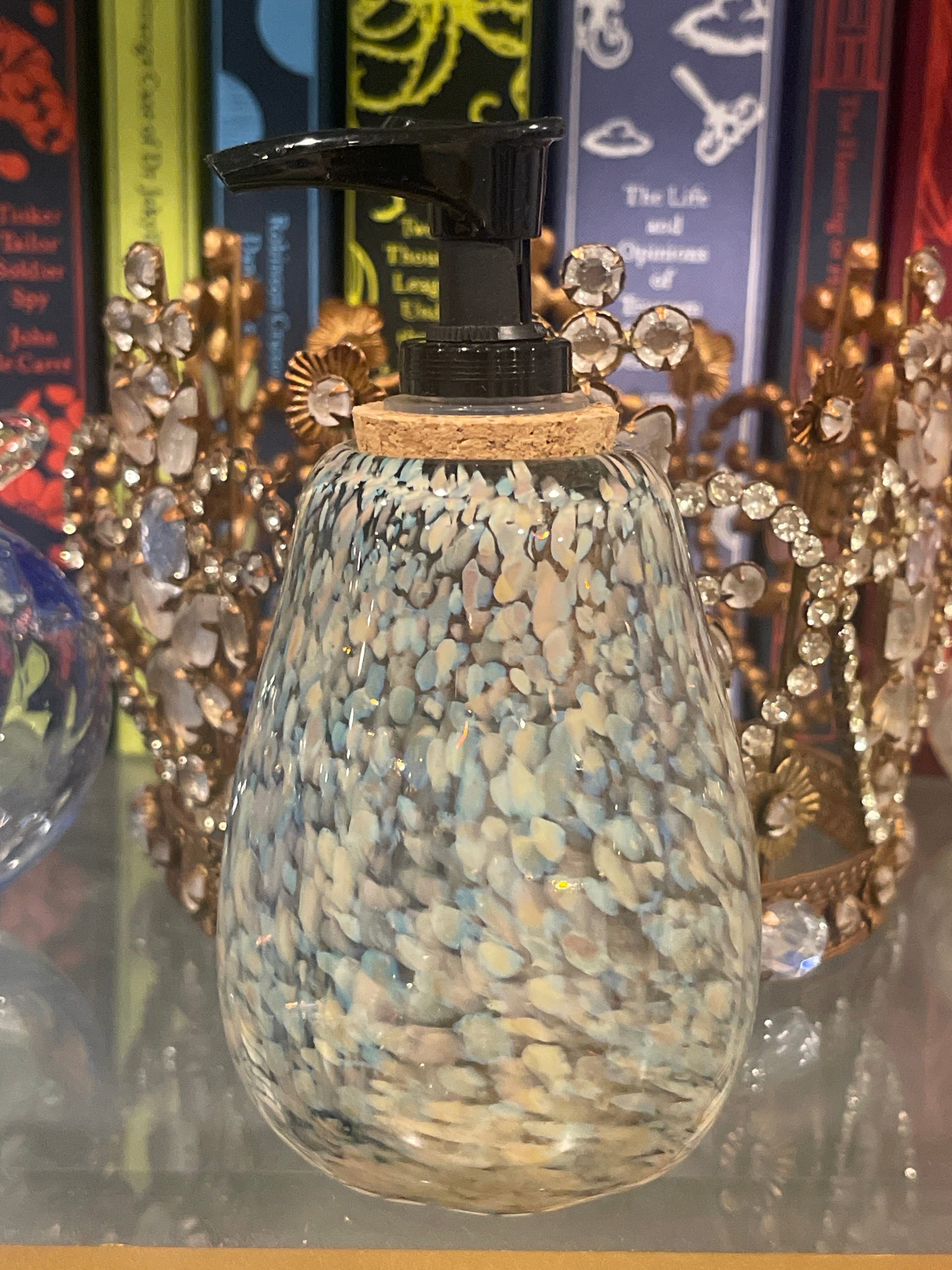 Handcrafted by the artisans at Dunmore Glassworks, this hand blown glass soap dispenser transforms an everyday essential into a functional work of art. Each piece is individually blown using traditional techniques, creating graceful curves, subtle air bubbles, and unique color variations that celebrate the beauty of handmade glass.