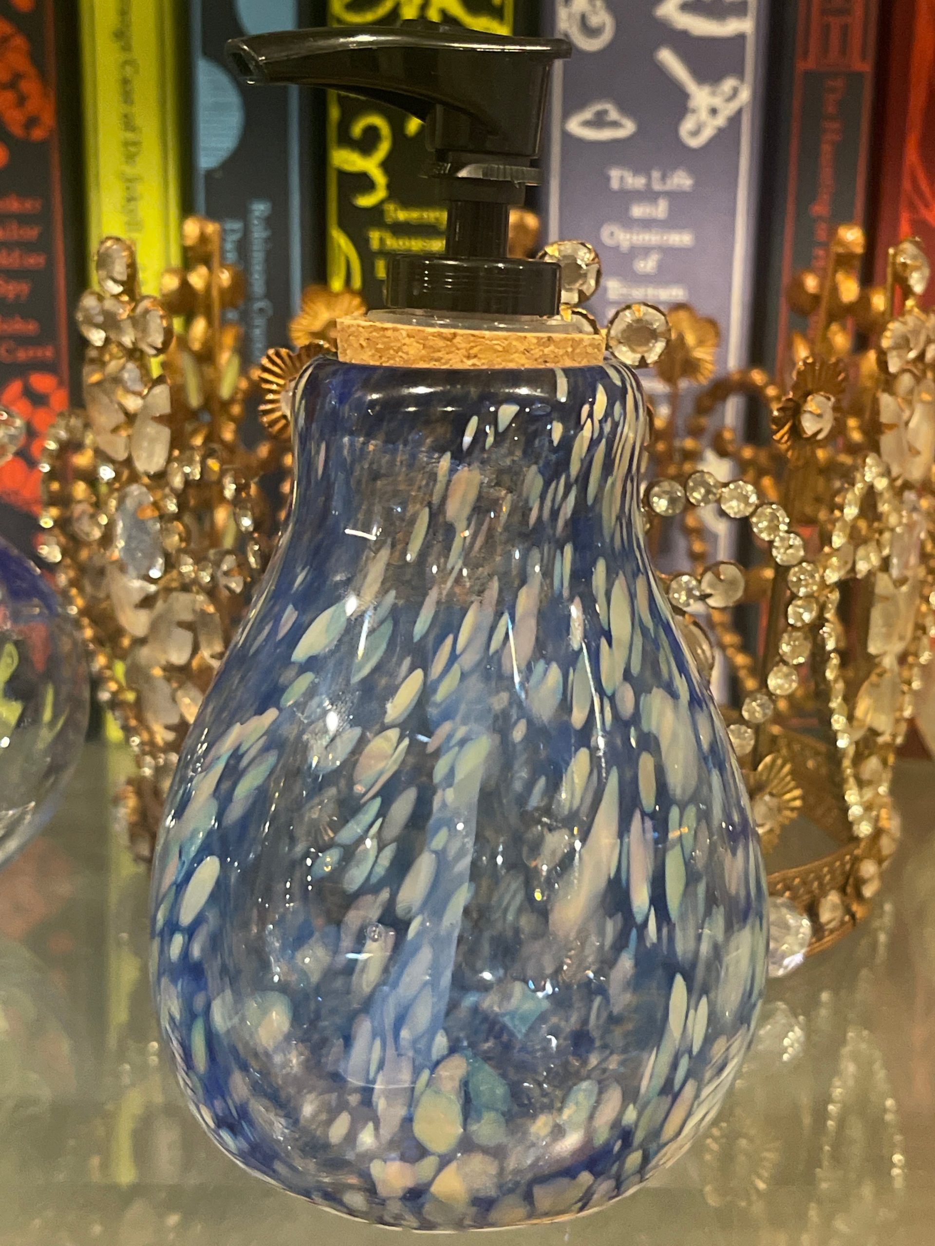 Handcrafted by the artisans at Dunmore Glassworks, this hand blown glass soap dispenser transforms an everyday essential into a functional work of art. Each piece is individually blown using traditional techniques, creating graceful curves, subtle air bubbles, and unique color variations that celebrate the beauty of handmade glass.