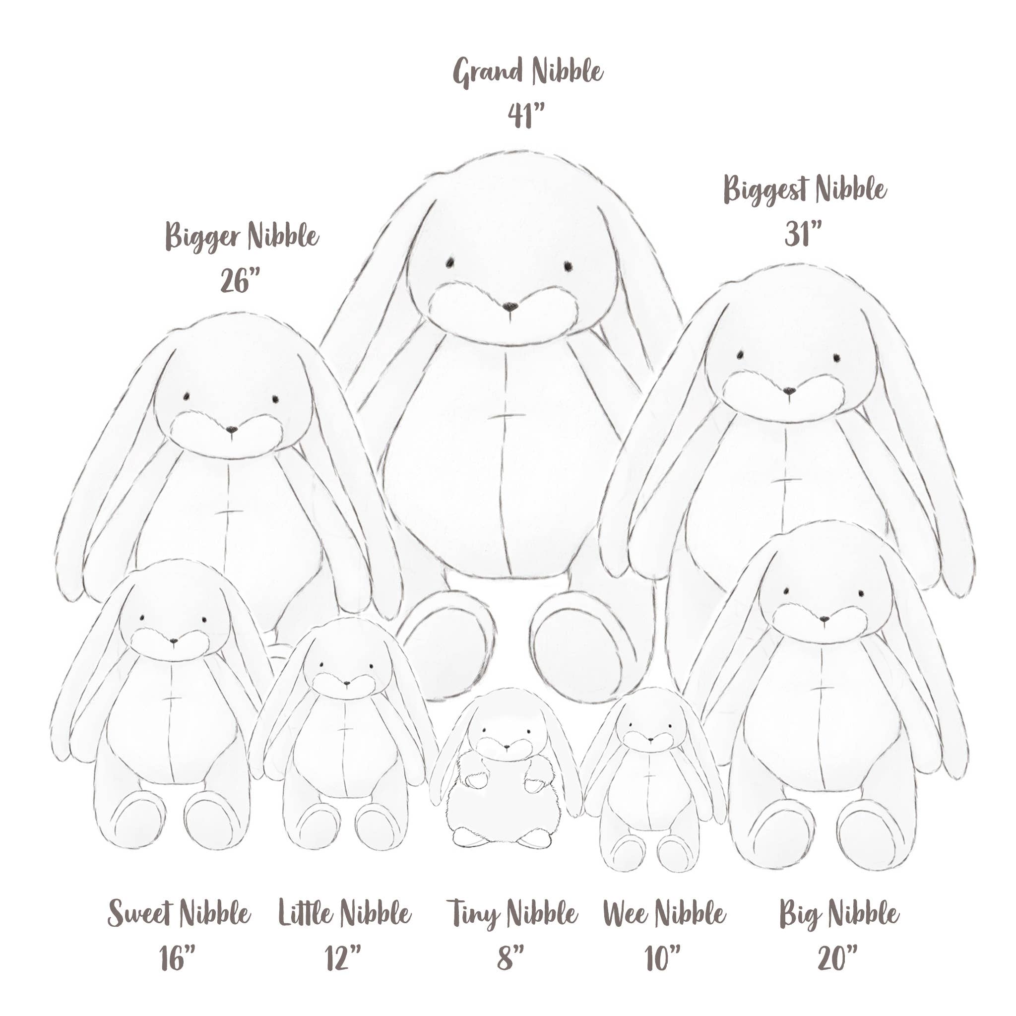 Little Floppy Nibble Bunny is sweet, tender and oh-my-gosh unbelievably soft, and now floppier than ever. This stuffed animal has a hand-embroidered face, pink cheeks, and big fluffy tail. Features luxurious Sugar Cookie Cream and warm white fur, with velour-lined ears. This plush bunny will become your best friend indeed.