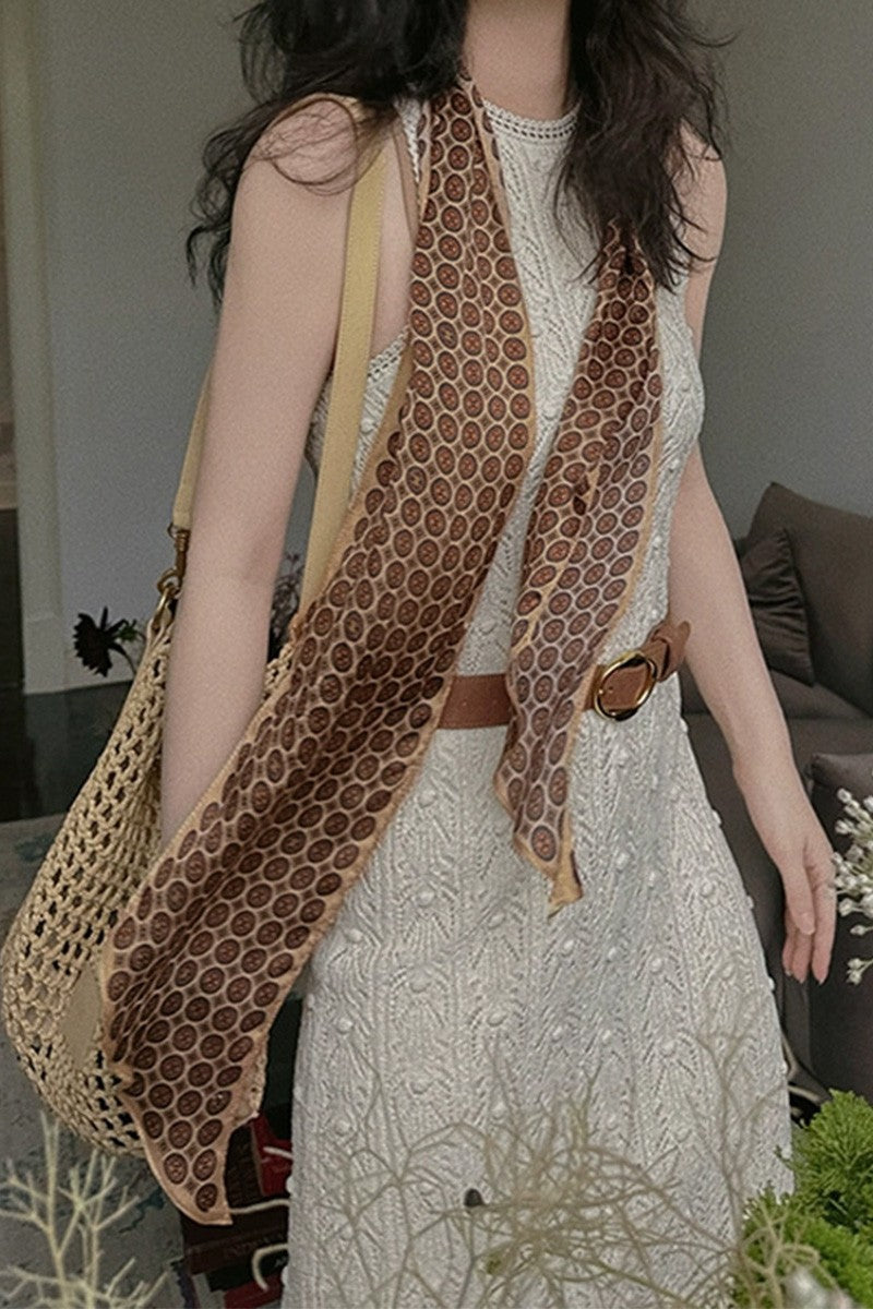 Elevate your wardrobe with the Long Silk Scarf. Crafted from luxurious silk, this versatile accessory can be worn in multiple ways—around the neck, as a headband, as a belt or tied to a bag—offering both elegance and functionality. Its generous length allows for creative styling, making it an essential piece for those who appreciate refined details and timeless sophistication. Perfect for adding a polished touch to any outfit, this neckerchief blends quality with versatility.