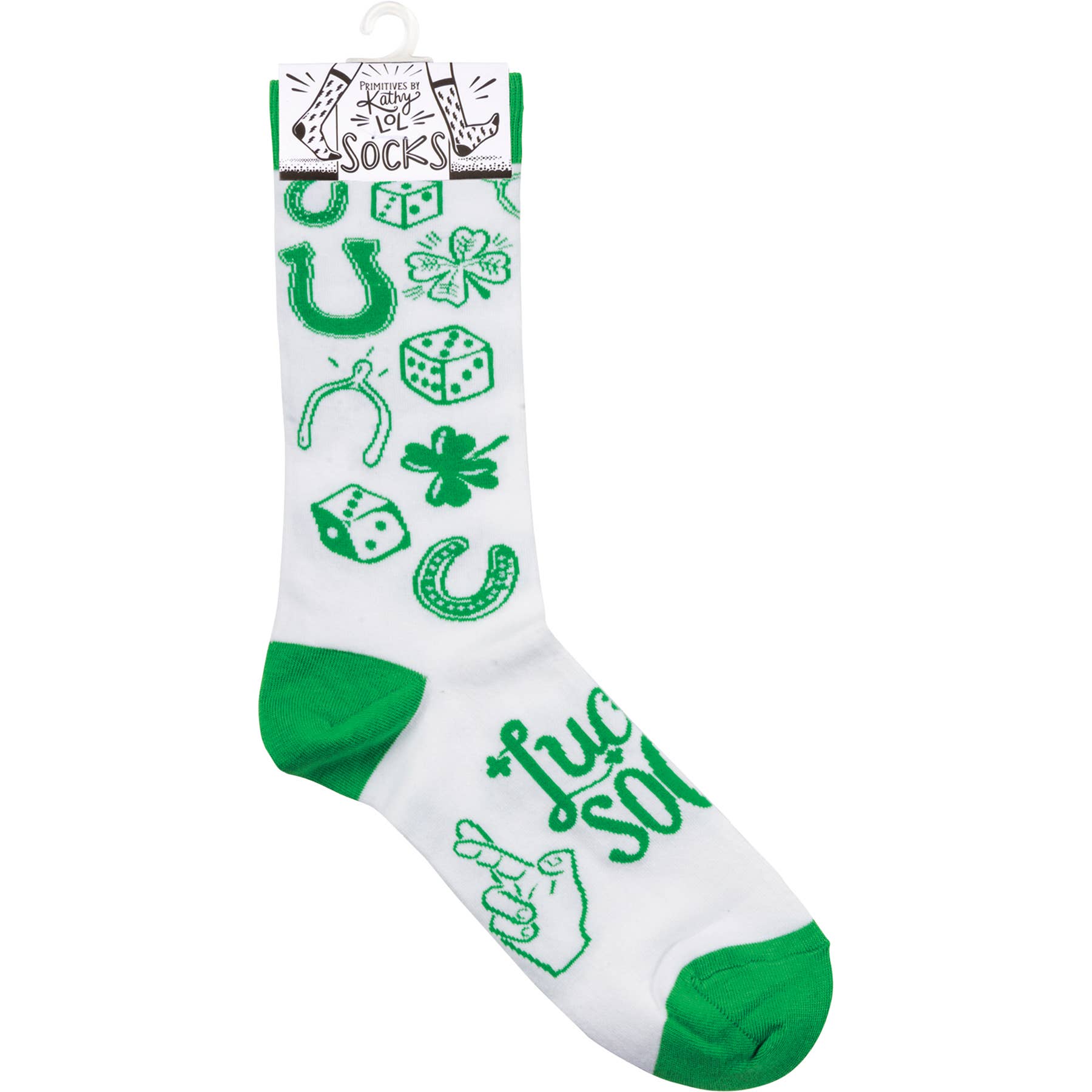 These colorful socks from our St. Patrick’s Day Collection feature woven designs with coordinating “Lucky Socks” sentiment. Cotton, nylon, spandex. Our Lucky socks are one size fits most.