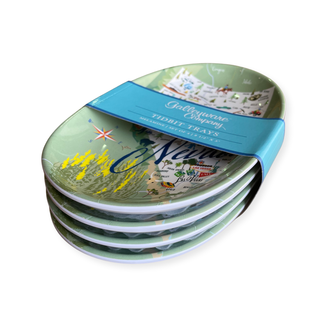 Nevada 8.5″ x 5″ oval Tidbit Trays can be used for appetizers, or as a catch-all dish for coins and jewelry, soap dish, butter dish, and more. Made of durable, break-resistant melamine. Dishwasher safe. Makes a great hostess gift. Not for the microwave.