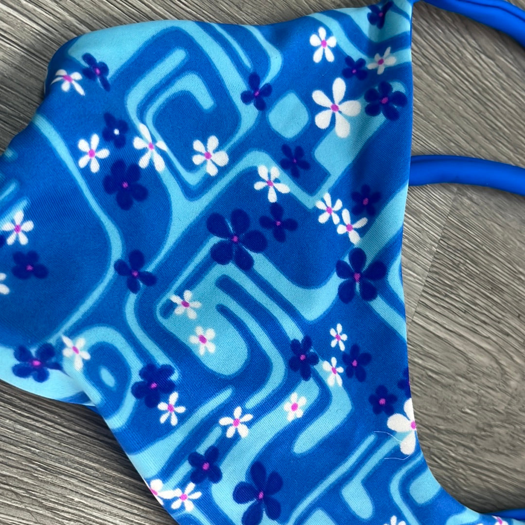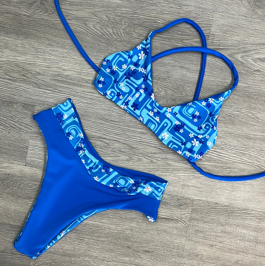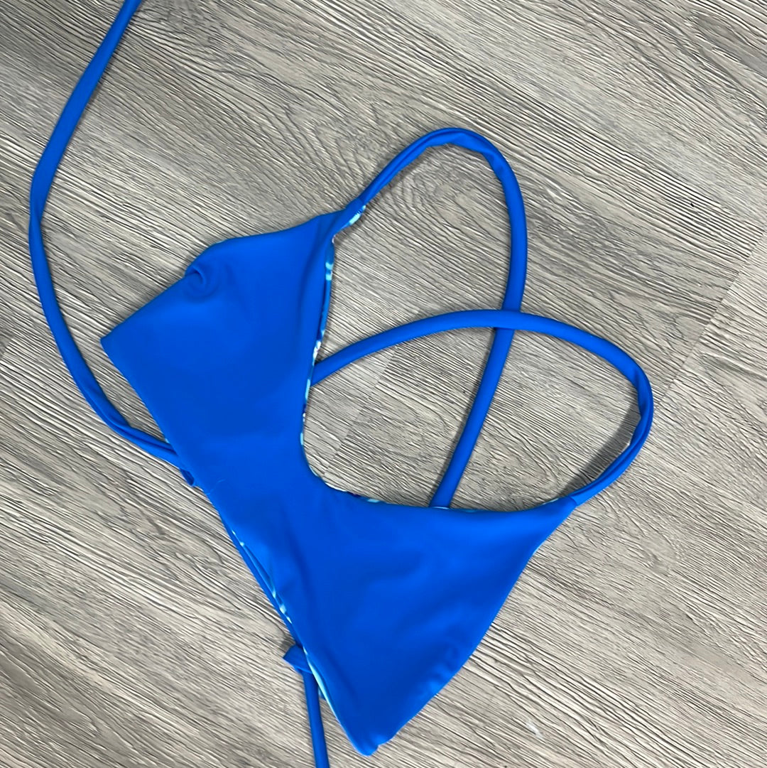Are you hearing the ocean’s call? Whether it’s a blue sky, a sandy beach or an active lifestyle that brings you joy, this is a top for all your adventures. With a blue swirl design on the front and reverses to solid blue inside!