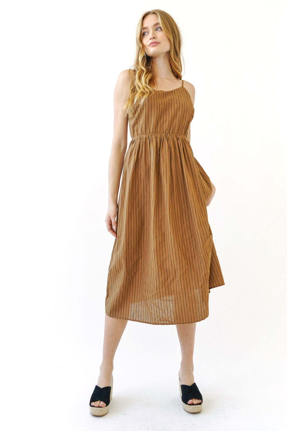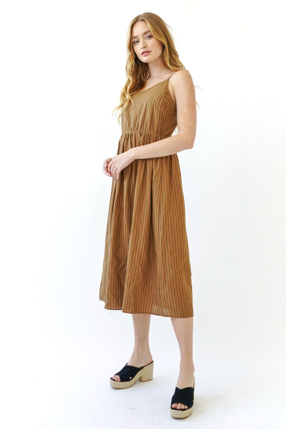 This Pinstripe Flared Midi Dress combines classic tailoring with contemporary flair. Featuring a flattering flared silhouette, it skims the body while allowing ease of movement for all-day comfort. The vertical pinstripe pattern elongates the figure, making it ideal for both professional settings and social occasions. Crafted with attention to detail, this dress offers a refined yet versatile option for a polished wardrobe.