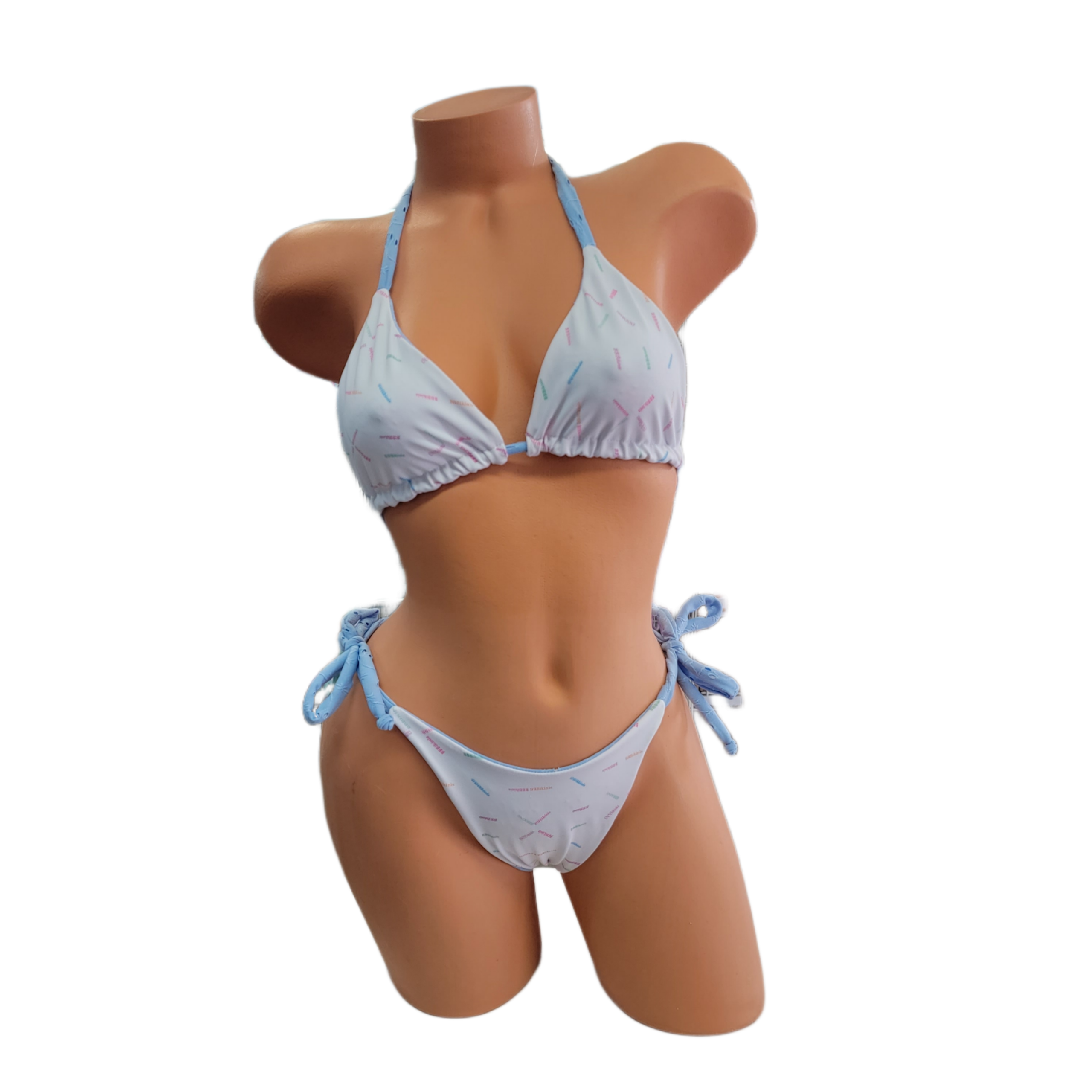 Come on over to the bright side with our Poolside Pastel Bouquet Triangle Top! This playful piece features blue eyelet fabric that reverses to white (because who doesn’t love eyelets?) and a classic triangle shape.