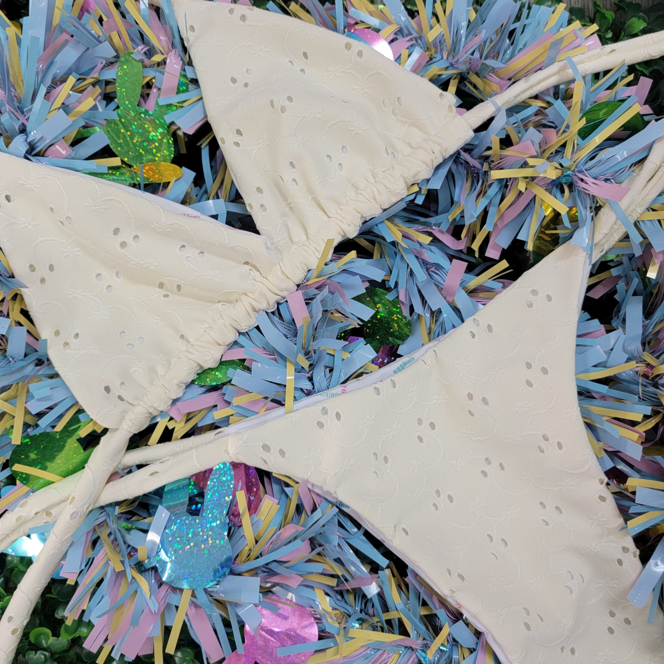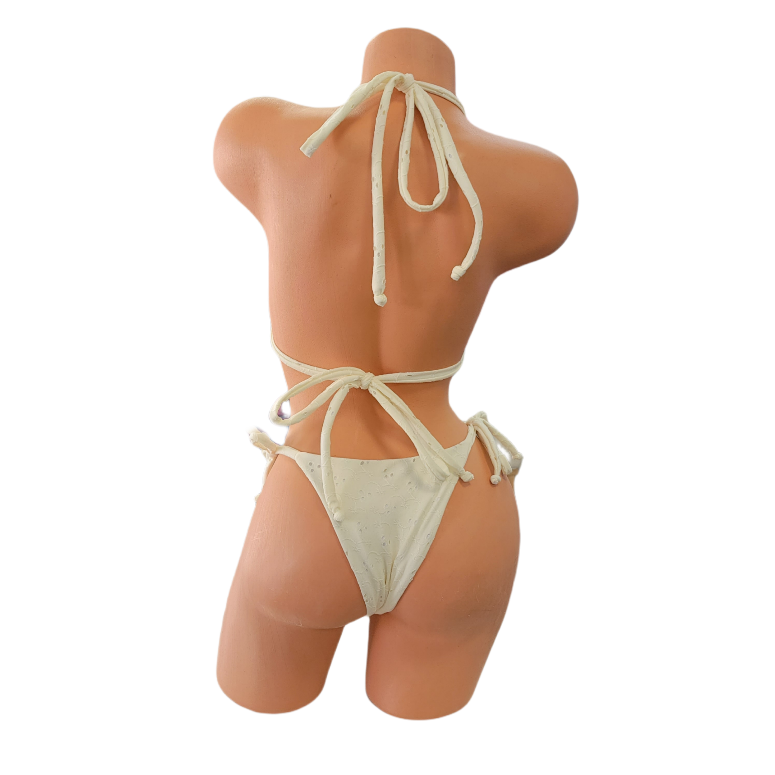 Add some sass to your swimwear with these Pearl Eyelet Cheeky Bali Bottoms. The tie sides and reversible feature will have you feeling fab and fierce – even on your most laid-back days. Looks great with a tan or for that classic neutral look.