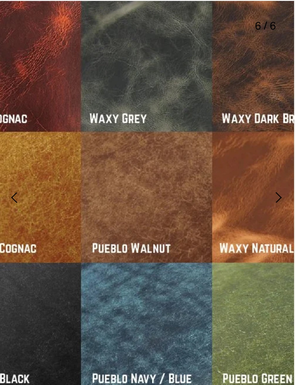 Cognac, Waxy Grey, Waxy Dark Brown, Light Cognac, Pueblo Walnut, Waxy Natural, Black, Pueblo Navy, Pueblo Green