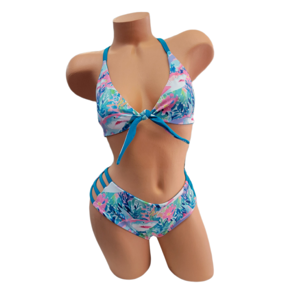 This reverse-able top is the perfect way to show off your beach style. With a knot in the front and straps in the back, it’ll make you look hot and flirty. And when you flip it around to teal, you’ll turn up the sass and give a suggestive wink to your admirers!