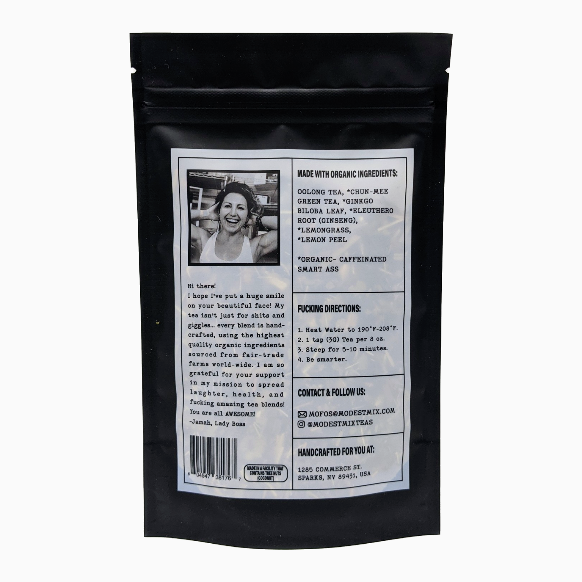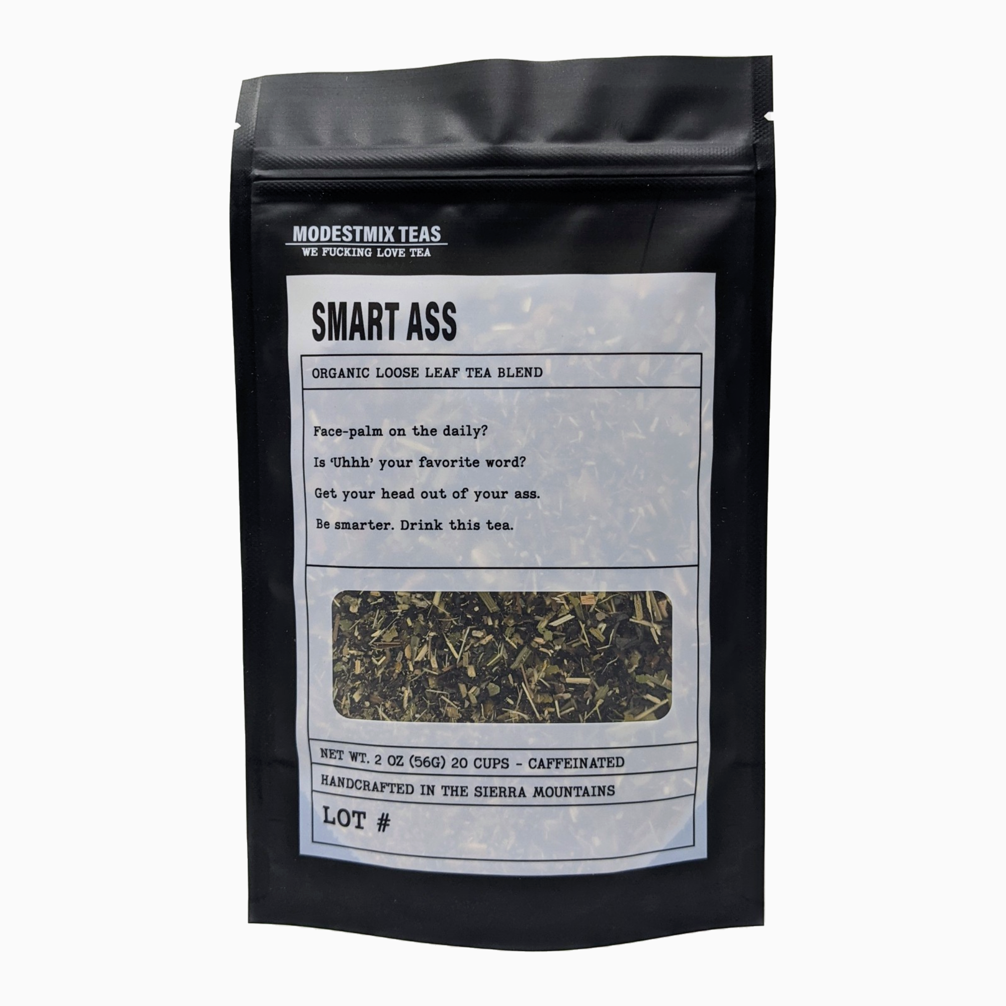 This is a fantastic blend for cognitive function!! We love your brain, and we want it to be smart, so it can make good decisions. This blend has a green tea and oolong base, along with badass gingko biloba and eleuthero root (the harder the name, the smarter they make you). Plus we added lemon to take the edge off.