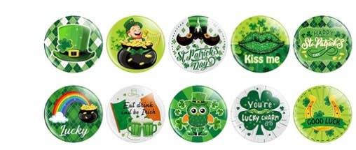 ST. PATRICK’S DAY BUTTON PINS: This set of 8 fun button pins are the ideal accessory for your St. Patricks Day outfit, or as a finishing touch to the St Patrick’s Day decor! Each button pin is lightweight Sturdy and durable. Featuring one set of 8 assorted designs: As pictured, varies with availability. “Kiss me, I’m Irish”, “IRISH”, “I ♥ Green”, “Keep calm and Leprechaun”, “Happy St. Patrick’s Day”, “Pinch Protection”, “I’m not Irish kiss me anyway!” and “I will shamrock your world”. EASY TO USE: Each pin features an easy open clasp, easily clip onto your shirt, sweater, or backpack. DIMENSIONS: Diameter: 1.5 inch; Height: 0.12 inch
