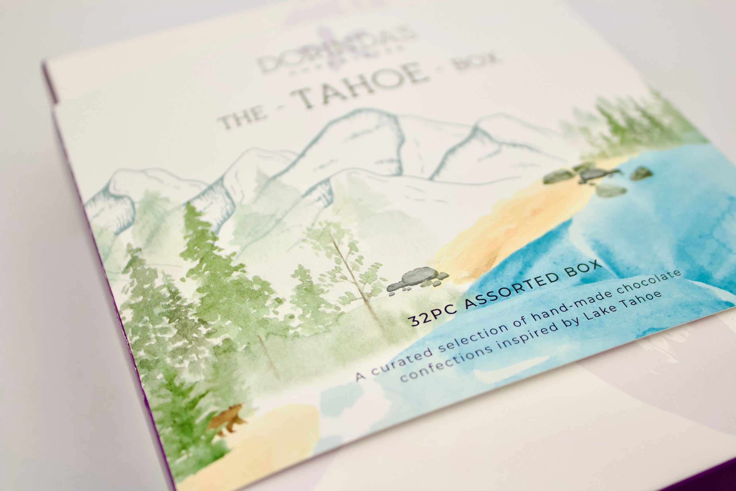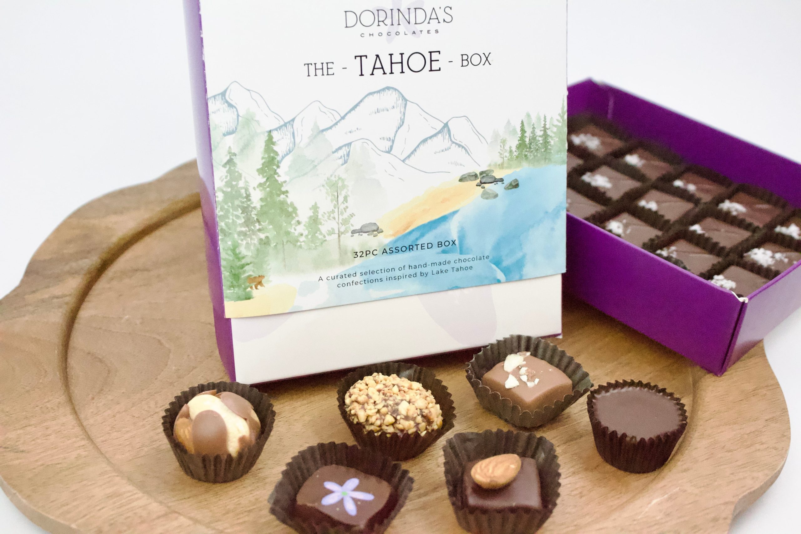 Dorinda’s Chocolates Tahoe Box – A curated selection of 12 handcrafted truffles on-top of a layer of 20 award-winning Sea Salt Caramels. This box makes the perfect sampler selection of our best pieces all in one beautiful Tahoe package.