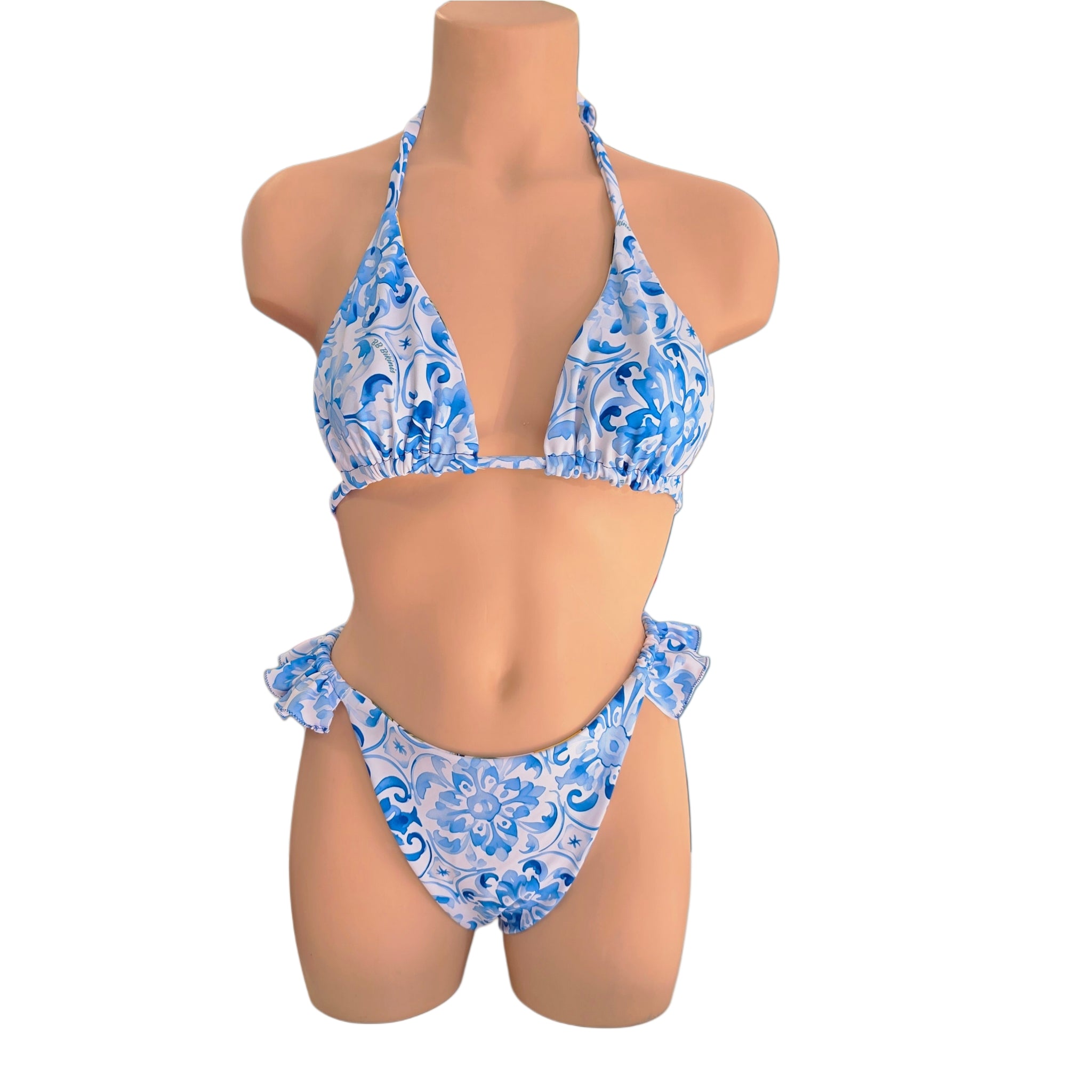 Indulge in sweet style with our Té dolce Triangle Top! Named after the Italian term for Sweet Tea 🍋, this reversible ruffled bikini will add a touch of sweetness to your swimsuit collection. Pair it with our Balli Ruffle single hip bottoms for a fun and flirty look.