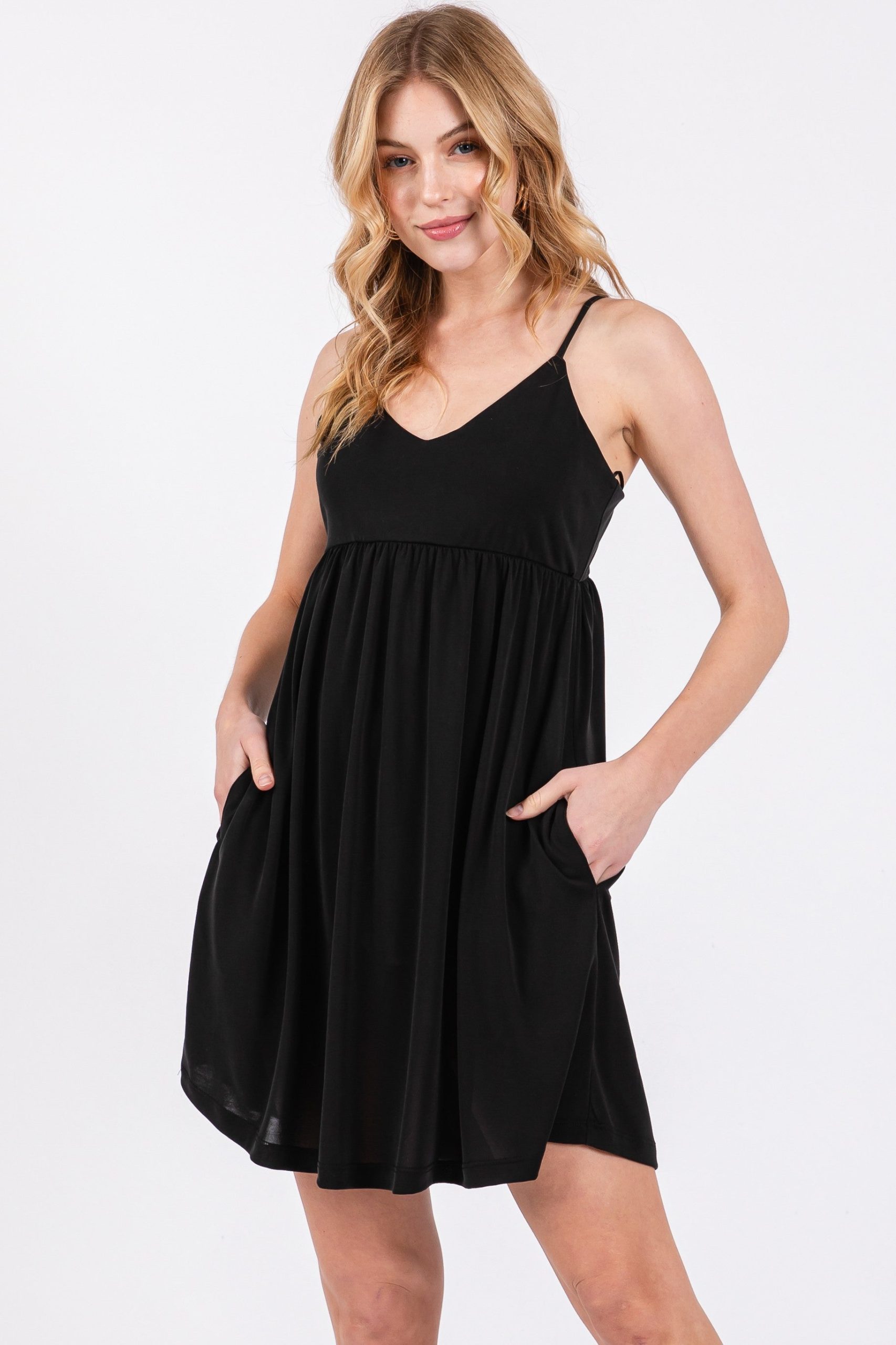 This Cami Mini Dress features a flattering V-neckline and convenient side pockets, combining style with practicality. Crafted from a luxurious blend of 74% modal and 26% poly cupro, the fabric offers exceptional softness, breathability, and a smooth drape. Ideal for warm weather or layering, this dress delivers both comfort and elegance in a versatile silhouette. And it even has pockets!