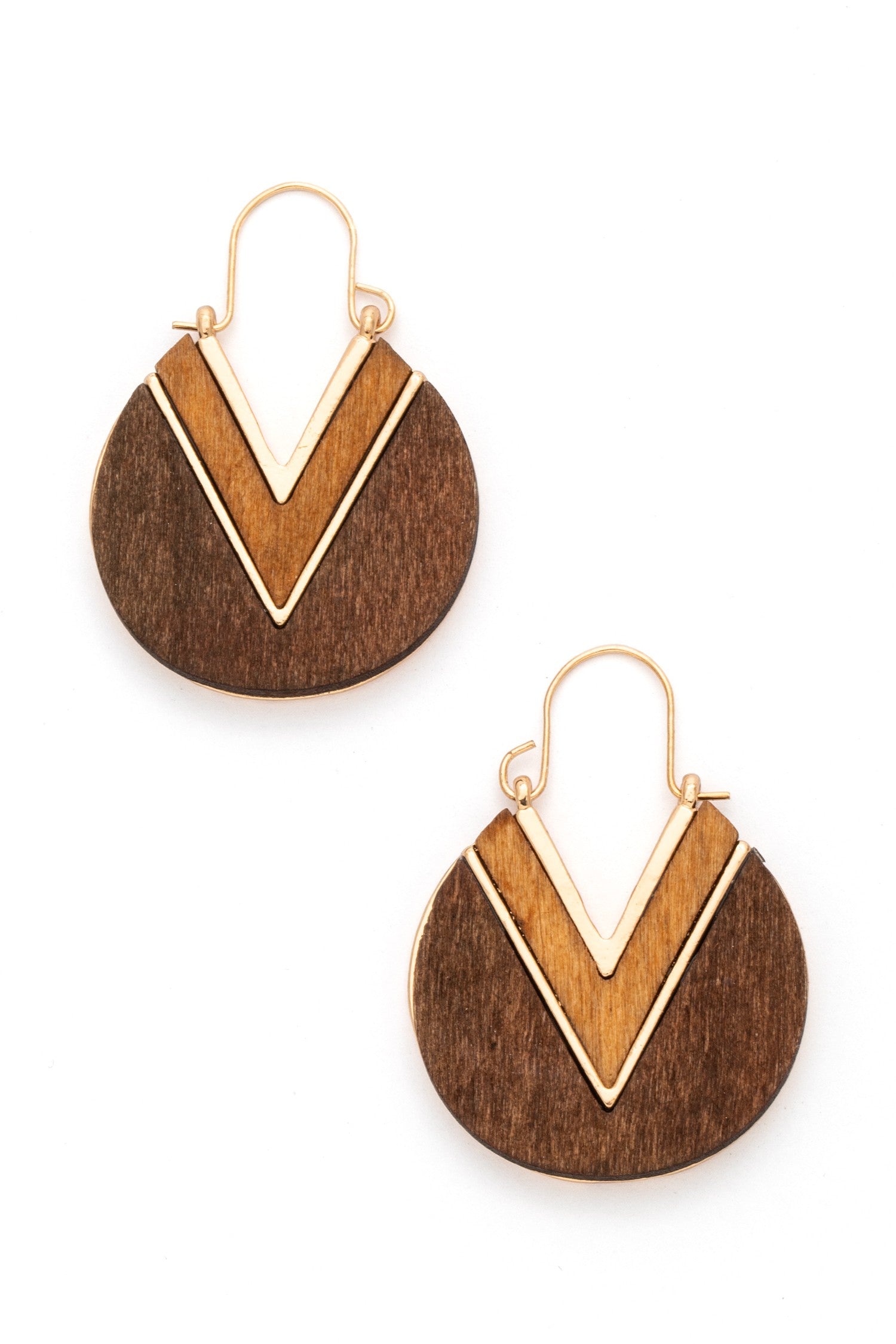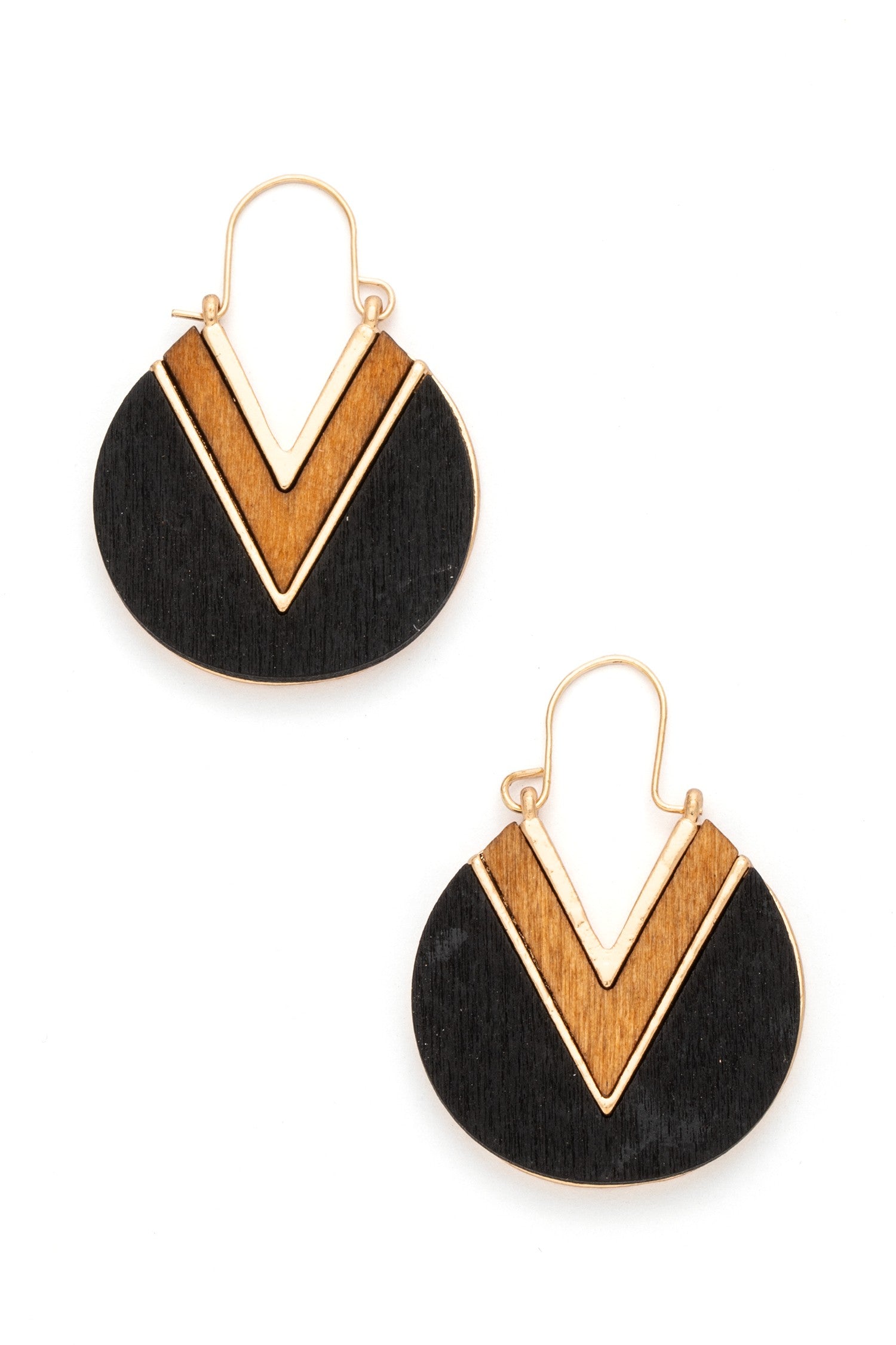 A versatile staple defined by its striking geometric contrast and effortless organic texture. These earrings feature a bold dual-finish design—pairing natural wood grain with polished black or dark mahogany accents—offering a silhouette that feels both modern and easy. Crafted with lightweight materials for comfortable all-day wear, they transition seamlessly from a casual daytime look with a linen jumpsuit to an elevated evening ensemble as a sophisticated, sculptural accessory.