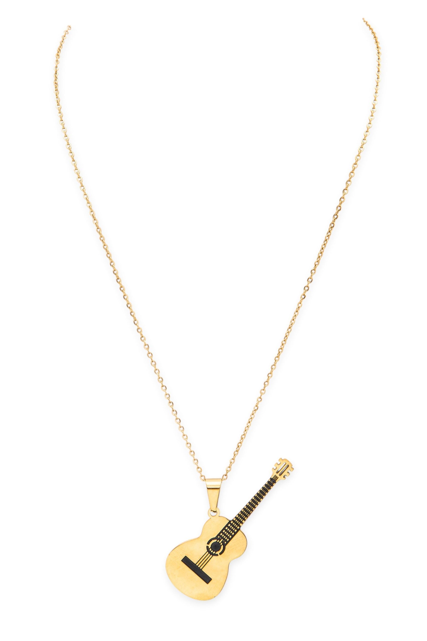 A versatile staple defined by its striking silhouette and effortless musical edge. This statement necklace features a high-shine stainless steel guitar pendant suspended from a classic link chain, offering a look that feels both expressive and easy. Crafted from durable stainless steel for lasting quality, it transitions seamlessly from a casual daytime look over a vintage band tee to an elevated evening ensemble as a bold, edgy accent.