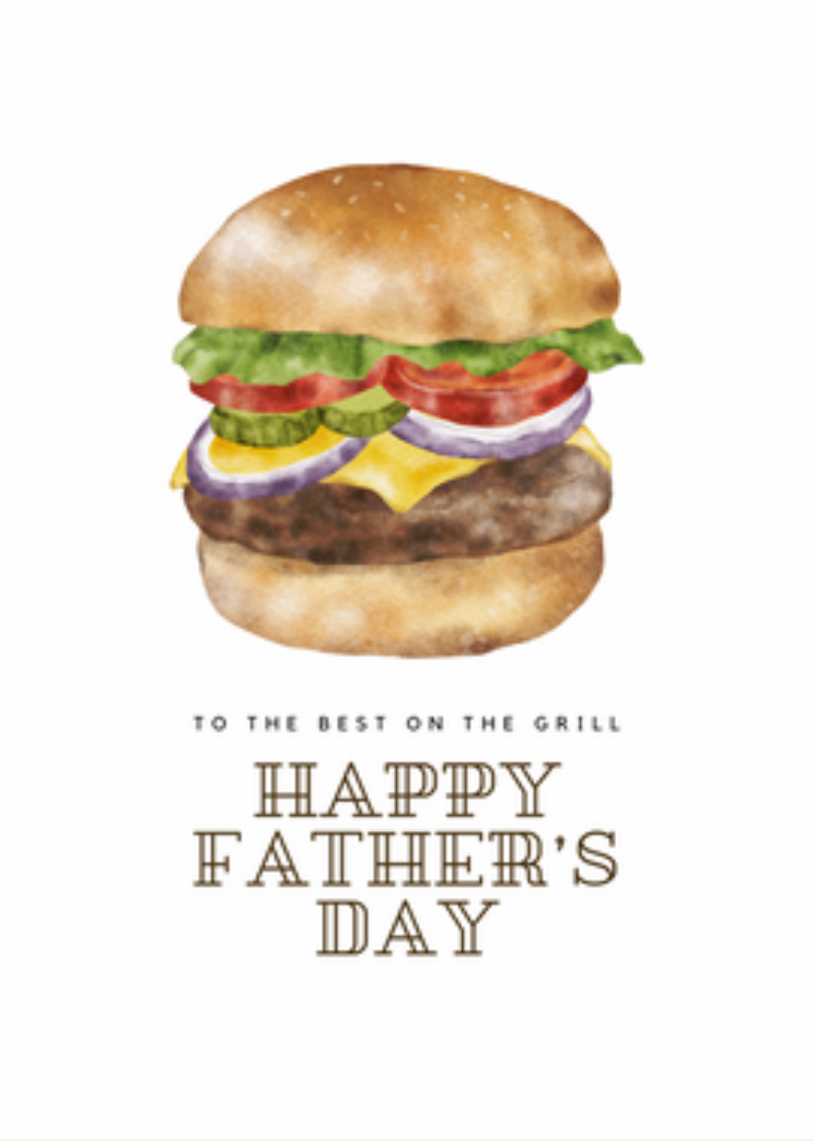 Celebrate your favorite grill master with this tasty Father’s Day card featuring a juicy burger and the message: “To the best on the grill – Happy Father’s Day.” Perfect for dads who love to fire up the BBQ and serve up the flavor, this card is a fun and flavorful way to show your appreciation!