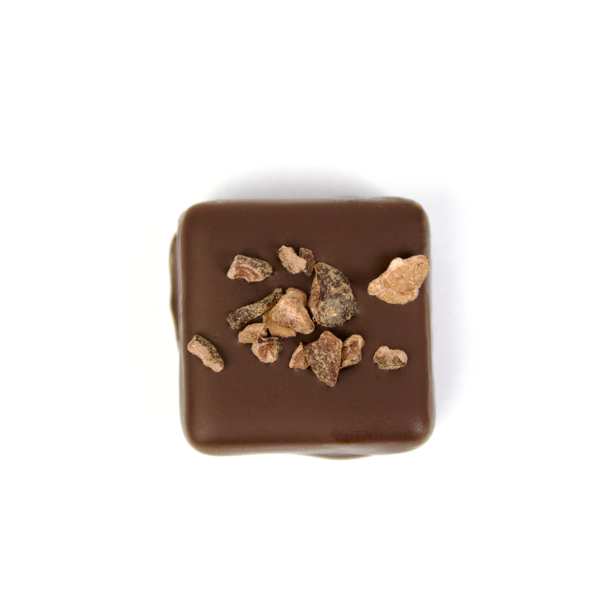 We partnered up with local distillery Frey Ranch to bring you the perfect blend of whiskey and chocolate. Bourbon and Caramel infused milk chocolate ganache in a 62% dark chocolate shell, topped with cocoa nibs