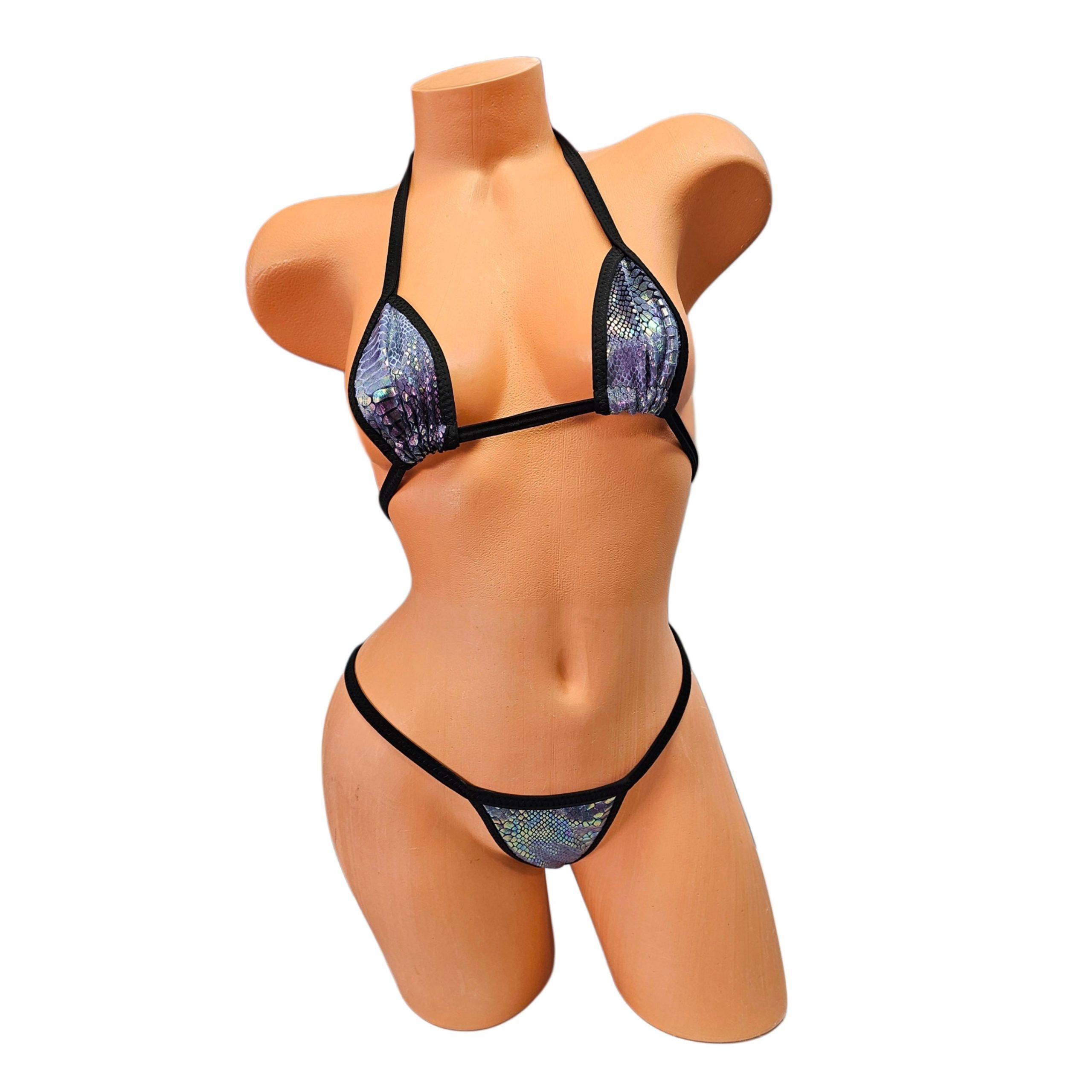 Show us your bold side with the Venom Purple micro! Its venom snake print and velvet undertone material create an electrifying combination, while the hologram print and black piping add a touch of mystery. Talk about a slithering look that will make you stand out! 🐍