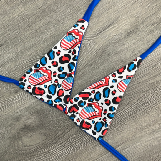 SIZE DOWN- This is the perfect bikini top for those who like to push the envelope. With a dalmatian print that can be reversible to pink tongues, this cute under-boob bikini top will bring out your wild side!